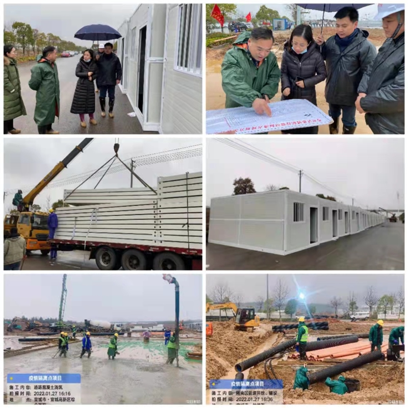 1月27日下午,宣州區(qū)政府副區(qū)長范瀟瀟到疫情防控臨時(shí)隔離點(diǎn)施工現(xiàn)場,查看工程施工進(jìn)展情況,并充分肯定了項(xiàng)目施工進(jìn)展速度。截止晚上18:00,疫情防控臨時(shí)隔離點(diǎn)項(xiàng)目集裝箱板房材料到場180多套,完成160套集裝箱板房拼裝。混凝土道路、雨污水管道和污水處理設(shè)施同步進(jìn)行。面對即將到來的低溫雨雪冰凍天氣,區(qū)國資集團(tuán)積極組織協(xié)調(diào)各項(xiàng)施工安排,施工人員全體上下團(tuán)結(jié)一心,以堅(jiān)決態(tài)度克服難關(guān),全力推進(jìn),高質(zhì)量完成項(xiàng)目建設(shè)。