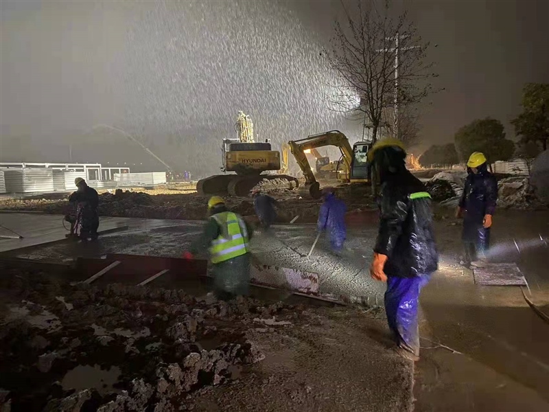 截止1月29日18:00,現(xiàn)場已完成準備區(qū)所有混凝土澆筑,雨污水管道、室外水電管道施工完成,地坪及道路基本結(jié)束。自1月28日暴雪來襲,施工環(huán)境惡劣,一線人員不畏嚴寒,連夜雪中奮戰(zhàn),集團公司黨員突擊隊、志愿服務隊出動搬運物資、修補設(shè)施等,以飽滿熱情和堅決態(tài)度克服各種困難和障礙,充分展現(xiàn)了“國企加速度”。